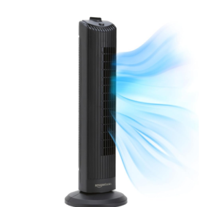 28" (71 cm) 60-Degree Oscillating Tower Fan for Bedroom, Living Room, Office, With 3 Speeds, Intuitive Mechanical Control, Matte Black, 35W, 27.8" x 9.4" x 9.4" (71 cm x 24 cm x 24 cm)