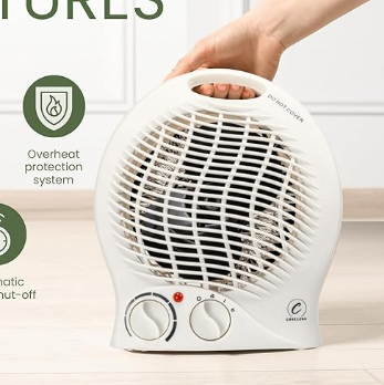 Electric Heater - 2KW Fan with 2 Heat Settings & Cooling Function - Portable with Adjustable Thermostat - Low Energy Silent Heating for Home, Office & Indoor Use - White