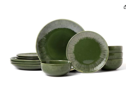 2-Piece Dinner Set, Stoneware Dinner Set for 4 with Dinner Plates, Side Plates and Bowls, Green – Gift Boxed & Dishwasher Safe
