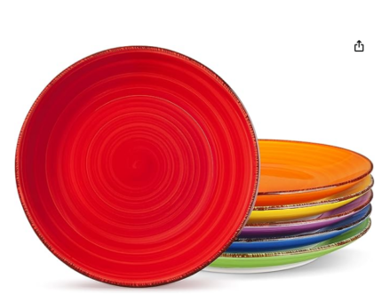 Bonita Dinner Plates Set of 6, 8.5 inch Scratch Resistant Ceramic Dinnerware Set, Dishwasher and Microwave Safe, as a Dessert Plates, Pasta Plate, Salad Plate, for Main Course, Warm Color