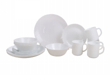 16 piece set of white glass tableware: (4 plates/4 soup bowls/4 coffee cups/4 cup plates) Material: White Glass