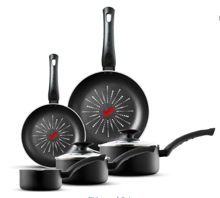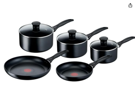 Pressed Aluminum Metal, Colour Pink, Blue, Yellow, Green, Black, Red Size Frying Pans, Pots, Oven Pot, Lids, 5 Utensil Handle material Metal