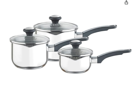 Linear Non Stick Induction Saucepans Sets With Lids, Easy Clean, Black and Rose Gold, 3 Piece Set, 16/18/20 cm