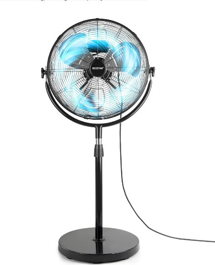 Cyclone Pedestal Fan, Adjustable Height, Remote Control, Timer, 3 Speeds, for Bedroom, Kitchen, Office and Living Room, 18″, White, 1885, Large