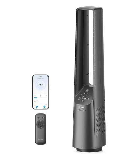 Bladeless Cooling Fan, 22 inch Tower Fan, 80° Oscillating Pedestal Fan with Remote Control, 8 Speeds, 8H Timer, LED Display with Auto Off, Portable Quiet Cooling Fan for Bedroom, Home, Office
