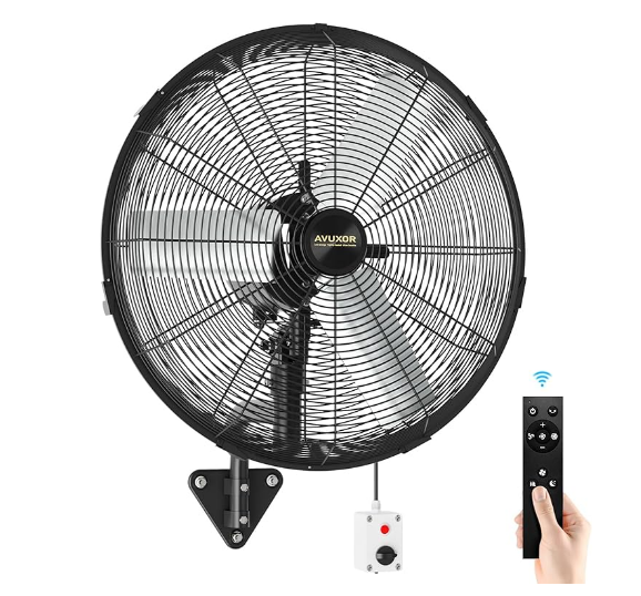 18 Inch Wall Mount Fan, 360° Manual Adjustable Tilt, 3 Speed High Velocity Airflow, IP44 Waterproof Heavy-Duty Metal Wall Fan for Patios, Garages, Workshops, Outdoor, Indoor, Non-Oscillating